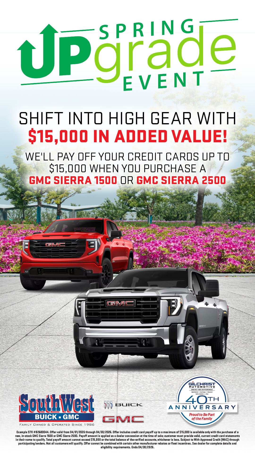 Only on Sierra 1500 and Sierra 2500 during the Spring Upgrade Event!