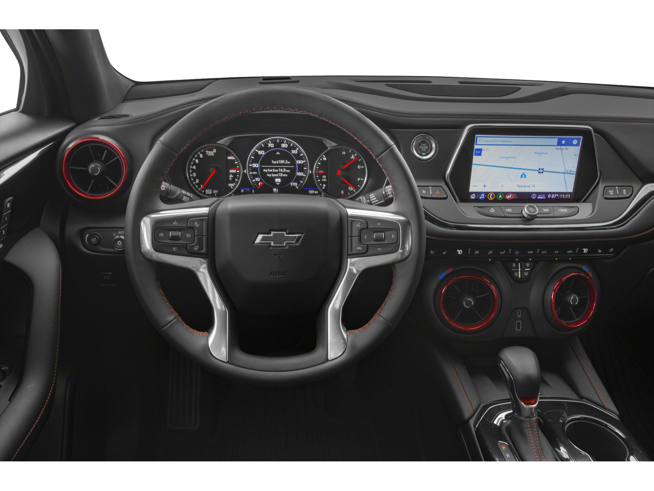 This 2020 Chevrolet Blazer RS in Nightfall Gray Metallic comes nicely equipped with the following features: 3.6L V6 SIDI DOHC VVT 9-Speed Automatic FWD Preferred Equipment Group 1RS, 155 Amp Alternator, 3.49 Final Drive Axle Ratio, 4-Wheel Disc Brakes, 6 Speakers, 6-Speaker Audio System Feature, 6-Way Power Front Passenger Seat Adjuster, ABS brakes, Air Conditioning, Alloy wheels, AM/FM radio: SiriusXM, Apple CarPlay/Android Auto, Auto-dimming door mirrors, Auto-dimming Rear-View mirror, Automatic temperature control, Brake assist, Bright Wheel Locks (LPO), Bumpers: body-color, Cargo Management System, Child-Seat-Sensing Airbag, Compass, Delay-off headlights, Driver door bin, Driver vanity mirror, Dual front impact airbags, Dual front side impact airbags, Electronic Stability Control, Emergency communication system: OnStar and Chevrolet connected services capable, Exterior Parking Camera Rear, Four wheel independent suspension, Front anti-roll bar, Front Bucket Seats, Front Center Armrest, Front dual zone A/C, Front reading lights, Fully automatic headlights, Garage door transmitter, Heated door mirrors, Heated Driver & Front Passenger Seats, Heated front seats, Heated steering wheel, High-Intensity Discharge Headlights, Illuminated entry, Knee airbag, Leather Shift Knob, Low tire pressure warning, Navigation System, Occupant sensing airbag, Outside temperature display, Overhead airbag, Overhead console, Panic alarm, Passenger door bin, Passenger vanity mirror, Perforated Leather-Appointed Seat Trim, Power door mirrors, Power driver seat, Power Liftgate, Power passenger seat, Power steering, Power windows, Radio data system, Radio: Chevrolet Infotainment 3 Plus System, Rear anti-roll bar, Rear reading lights, Rear seat center armrest, Rear window defroster, Rear window wiper, Remote keyless entry, Ride & Handling Suspension, Security system, SiriusXM w/360L, Speed control, Speed-sensing steering, Split folding rear seat, Spoiler, Steering wheel mounted audio controls, Tachometer, Telescoping steering wheel, Tilt steering wheel, Traction control, Trip computer, Turn signal indicator mirrors, Variably intermittent wipers, Voltmeter, and Wheels: 20 Dark Android Machined-Face Aluminum. 19/26 City/Highway MPG