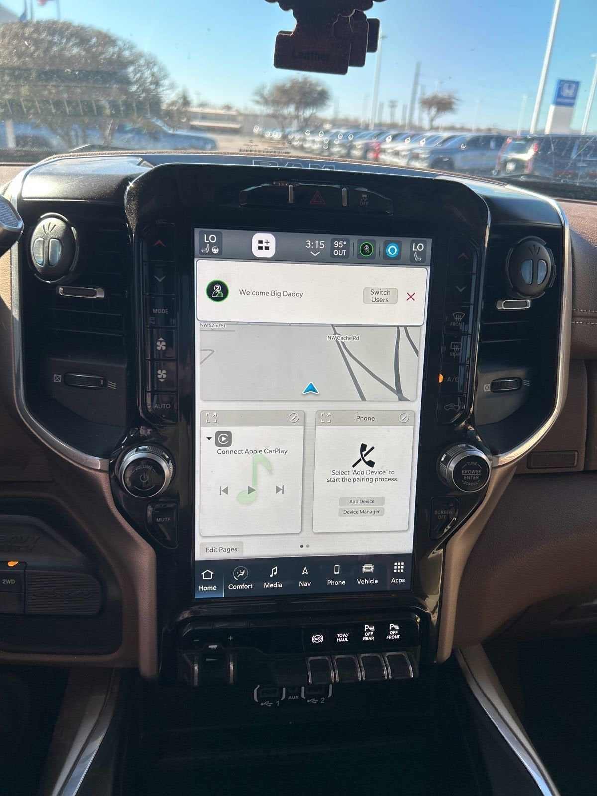 This 2022 Ram 2500 Laramie in Delmonico Red Pearlcoat comes with the following features: Chrome Appearance Group (Chrome Belt Moldings, Chrome Flat Wheel-to-Wheel Side Steps, and Chrome Tow Hooks), Cold Weather Group (Engine Block Heater and MOPAR Winter Front Grille Cover), Laramie Level An Equipment Group (2nd Row In Floor Storage Bins, Auto High Beam Headlamp Control, Chrome Exterior Mirrors, Exterior Mirrors Courtesy Lamps, Exterior Mirrors w/Heating Element, Exterior Mirrors w/Memory, Exterior Mirrors w/Supplemental Signals, Foam Bottle Insert (Door Trim Panel), Mirror Running Lights, Mirror-Mounted Aux Reverse Lamps, Power Adjustable Convex Aux Mirrors, Power Adjustable Pedals w/Memory, Power Chrome Tow Mirrors w/Convex Spotter & Memory, Power Folding Mirrors, Radio/Driver Seat/Mirrors/Pedals Memory, Rain Sensitive Windshield Wipers, Remote Tailgate Release, and Trailer Tow Mirrors), Quick Order Package 2HH Laramie, 10 Speakers, 115V Auxiliary Rear Power Outlet, 12 Touchscreen Display, 2 Way Rear Headrest Seat, 20 x 8.0 Polished Aluminum Wheels, 220 Amp Alternator, 3.73 Axle Ratio, 4 Way Front Headrests, 4-Wheel Disc Brakes, 4G LTE Wi-Fi Hot Spot, 5th Wheel/Gooseneck Towing Prep Group, 8.4 Touchscreen Display, ABS brakes, Active Noise Control System, Adjustable pedals, Air Conditioning, Alexa Built-In, All R1 High Radios, All Radio Equipped Vehicles, Alloy wheels, AM/FM radio: SiriusXM, Anti-Spin Differential Rear Axle, Apple CarPlay, Apple CarPlay/Android Auto, Auto-dimming Rear-View mirror, Automatic temperature control, Bluetooth® Handsfree Phone & Audio, Brake assist, Bumpers: chrome, Center Hub, Compass, Connected Travel & Traffic Services, Connectivity - US/Canada, Delay-off headlights, Disassociated Touchscreen Display, Driver door bin, Driver vanity mirror, Dual front impact airbags, Dual front side impact airbags, Electronic Stability Control, Electronically Controlled Throttle, For Details, Visit DriveUconnect.com, For More Info, Call 800-643-2112, Front anti-roll bar, Front Center Armrest w/Storage, Front dual zone A/C, Front fog lights, Front reading lights, Front Seat Back Map Pockets, Fully automatic headlights, Garage door transmitter, Global Telematics Box Module (TBM), Google Android Auto, GPS Antenna Input, GPS Navigation, HD Radio, Heated door mirrors, Heated Front Seats, Heated front seats, Heated Steering Wheel, Heated steering wheel, Illuminated entry, Integrated Center Stack Radio, Integrated Voice Command w/Bluetooth®, Leather steering wheel, Leather Trim 40/20/40 Bench Seat, Low tire pressure warning, MOPAR Spray In Bedliner, Occupant sensing airbag, Off-Road Information Pages, Outside temperature display, Overhead airbag, Overhead console, Panic alarm, ParkView Rear Back-Up Camera, Passenger door bin, Passenger vanity mirror, Power 2-Way Driver Lumbar Adjust, Power 2-Way Passenger Lumbar Adjust, Power Adjust 8-Way Driver Seat, Power Adjust 8-Way Front Passenger Seat, Power door mirrors, Power driver seat, Power passenger seat, Power steering, Power windows, Radio data system, Radio: Uconnect 5 Nav w/12.0 Display, Radio: Uconnect 5 W w/8.4 Display, Rear 60/40 Folding Seat, Rear anti-roll bar, Rear reading lights, Rear seat center armrest, Rear step bumper, Rear window defroster, Remote keyless entry, Security system, Selectable Tire Fill Alert, SiriusXM Radio Service, SiriusXM Satellite Radio, SiriusXM w/360L, Speed control, Split folding rear seat, Steering wheel mounted audio controls, Tachometer, Tilt steering wheel, Tip Start, Traction control, Trip computer, Turn signal indicator mirrors, Variably intermittent wipers, Vendor Painted Cargo Box, Vendor Painted Cargo Box Tracking, Voltmeter, and Wheels: 18 x 8.0 Polished AluminuM.