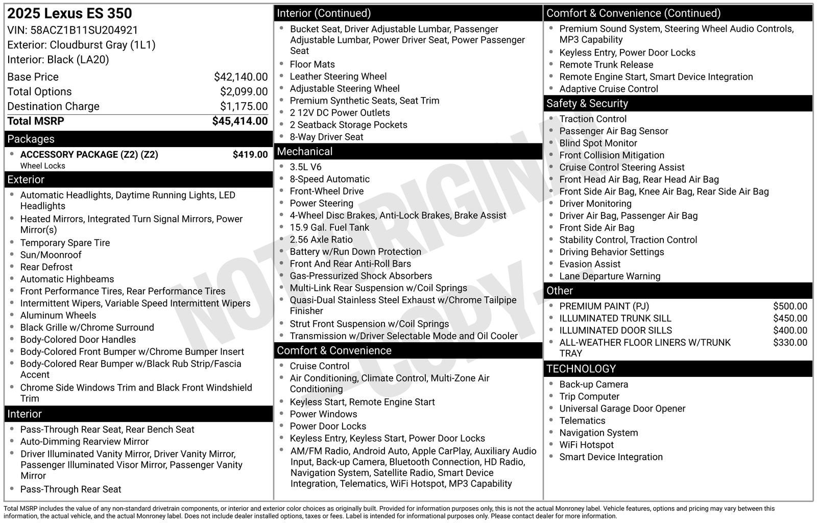 The Manufacturer's Suggested Retail Price excludes tax, title, license, dealer fees and optional equipment. Dealer sets final price.